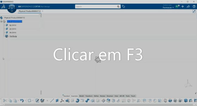Por vezes a árvore do CATIA 3DEXPERIENCE desaparece sem nos darmos conta. Quando este cenário te acontecer, basta clicares em F3 e terás a árvore de volta ao teu campo de visão.