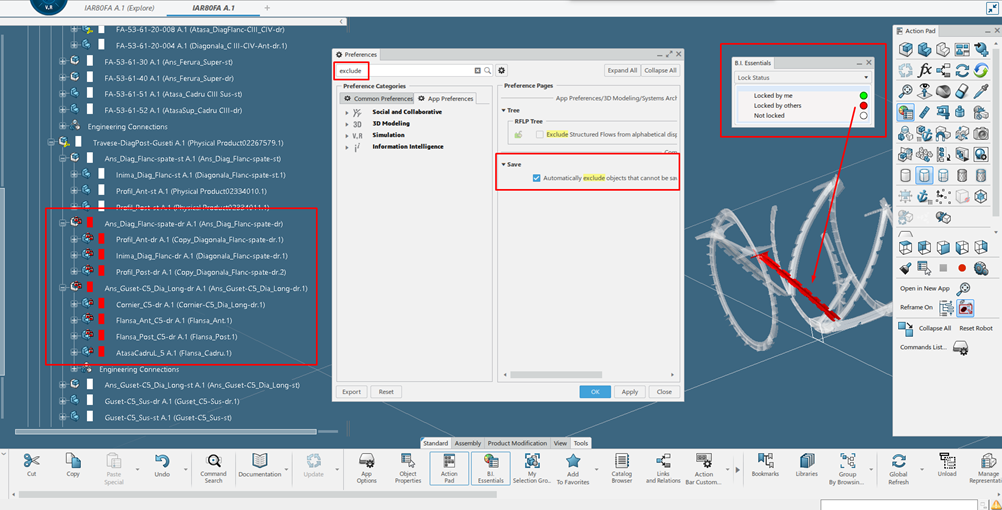 É possível simplificar este processo ativando a opção ‘Automatically exclude objects that cannot be saved’ a partir das preferências das aplicações nativas do 3DEXPERIENCE.